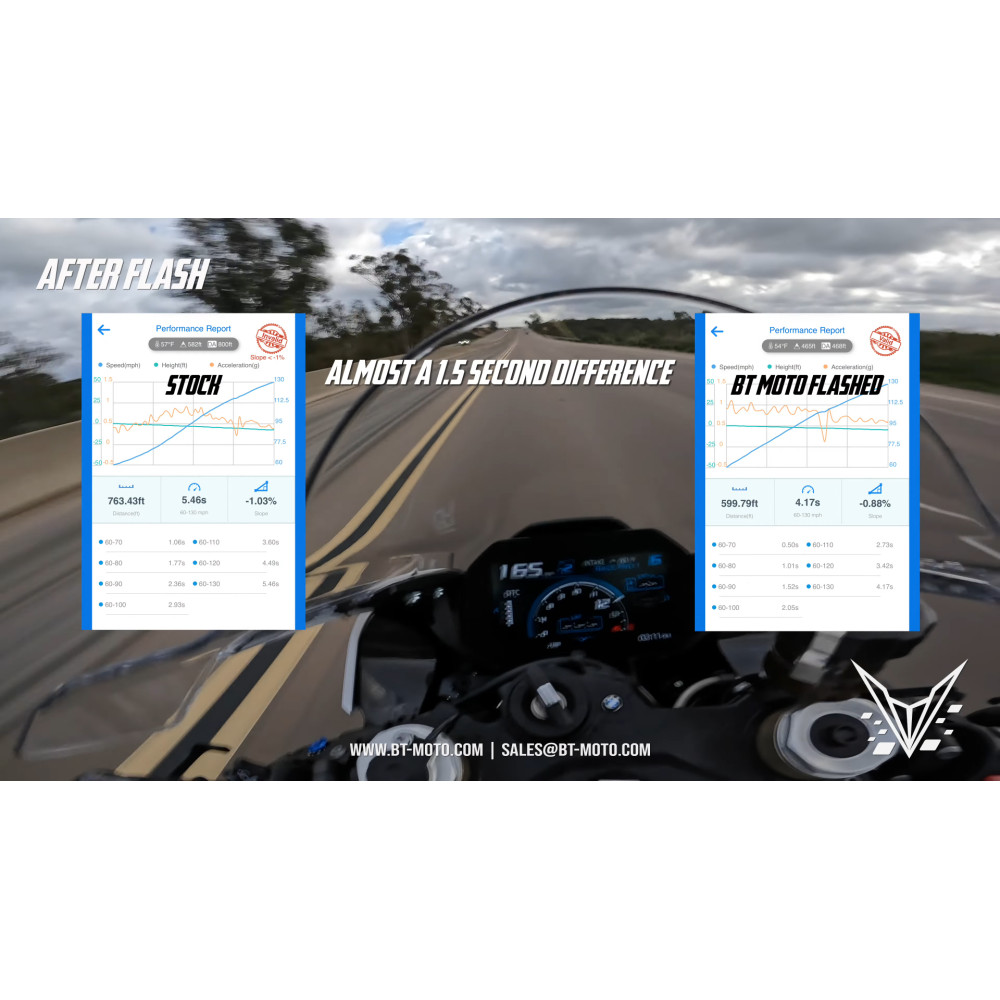 MODS: FACTORY STOCK 2023 BMW S1000RR WITH AND WITHOUT OUR BT-MOTO FLASH 5TH GEAR