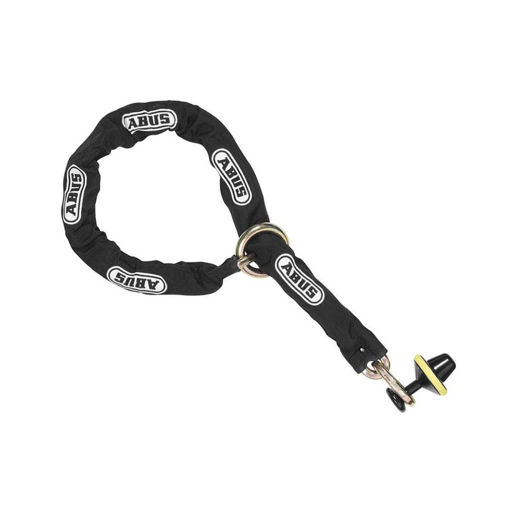ABUS chain with locking loop, allows you to compose your own lock package, works great with ABUS padlocks or disc brake locks. Chain made of hardened special steel.