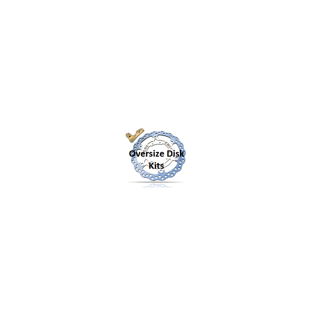 Oversize Disk Kits på 250/280mm eller 320mm for å oppgradere bremsingsevnen. Bruk braketten som følger med og standard kaliper for å plassere om kaliperen på en større radius for å forbedre bremsingsevnen og følelsen over standard skivestørrelse.
