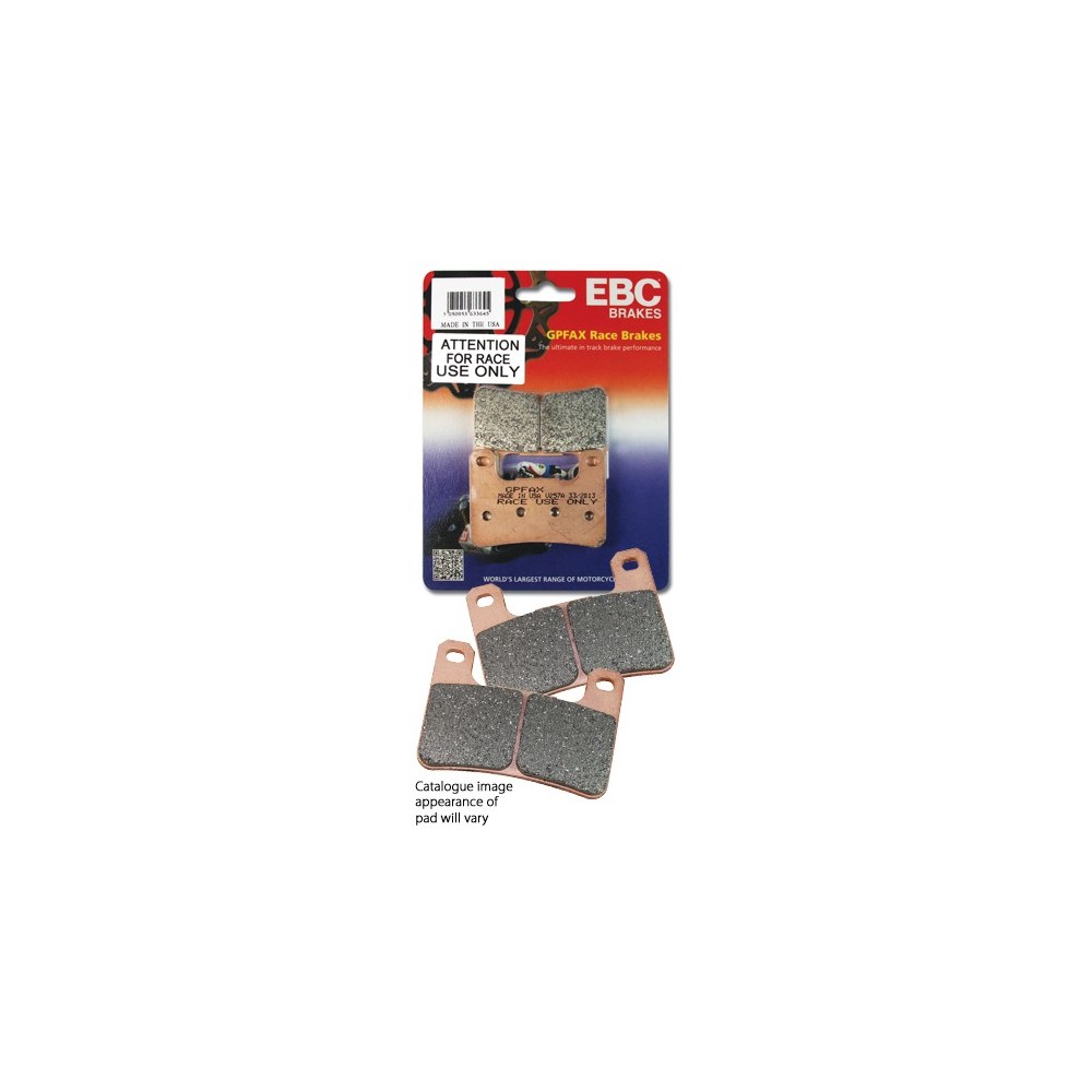 EBC Brakes Full Race GPFAX bremseklosser KUN FOR BRUK I LØP Denne serien med klosser har den høyeste friksjonsnivået av alle EBC Brakes produkter De leveres med livstidsgaranti GPFAX løpsklosser fra EBC Brakes vil prestere bedre enn noen andre bremseklosser du kan kjøpe. På grunn av deres høye friksjonsgrad på mellom 0,6 og 0,7 som gir utrolig bremseeffekt, er de uegnet for gatebruk med vanlige veidekk. Med perfekt varmestabilitet, absolutt ingen bremsesvikt og varmesykluser, kan disse klossene brukes over flere løp, og du kan være trygg på at de alltid vil prestere.