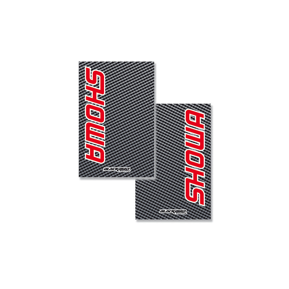 The kit is composed of two fork stickers made of crystall material (thickness 0,5 mm), size 22X17 cm, suitable to be applied on fork protections."