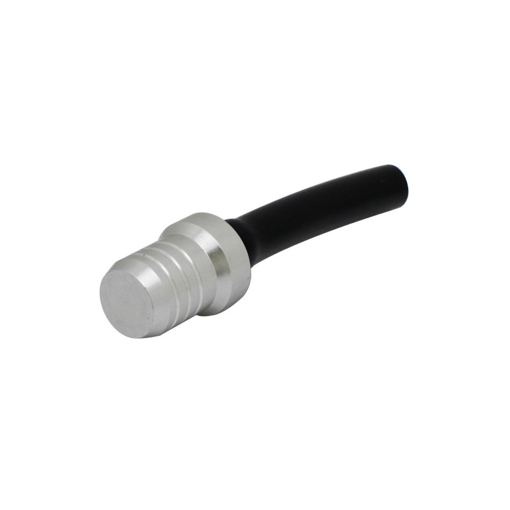 Short vented billet aluminum replacement for the bulky, long stock vent hose. Universal, works on any hose vented gas cap, aluminum or plastic."