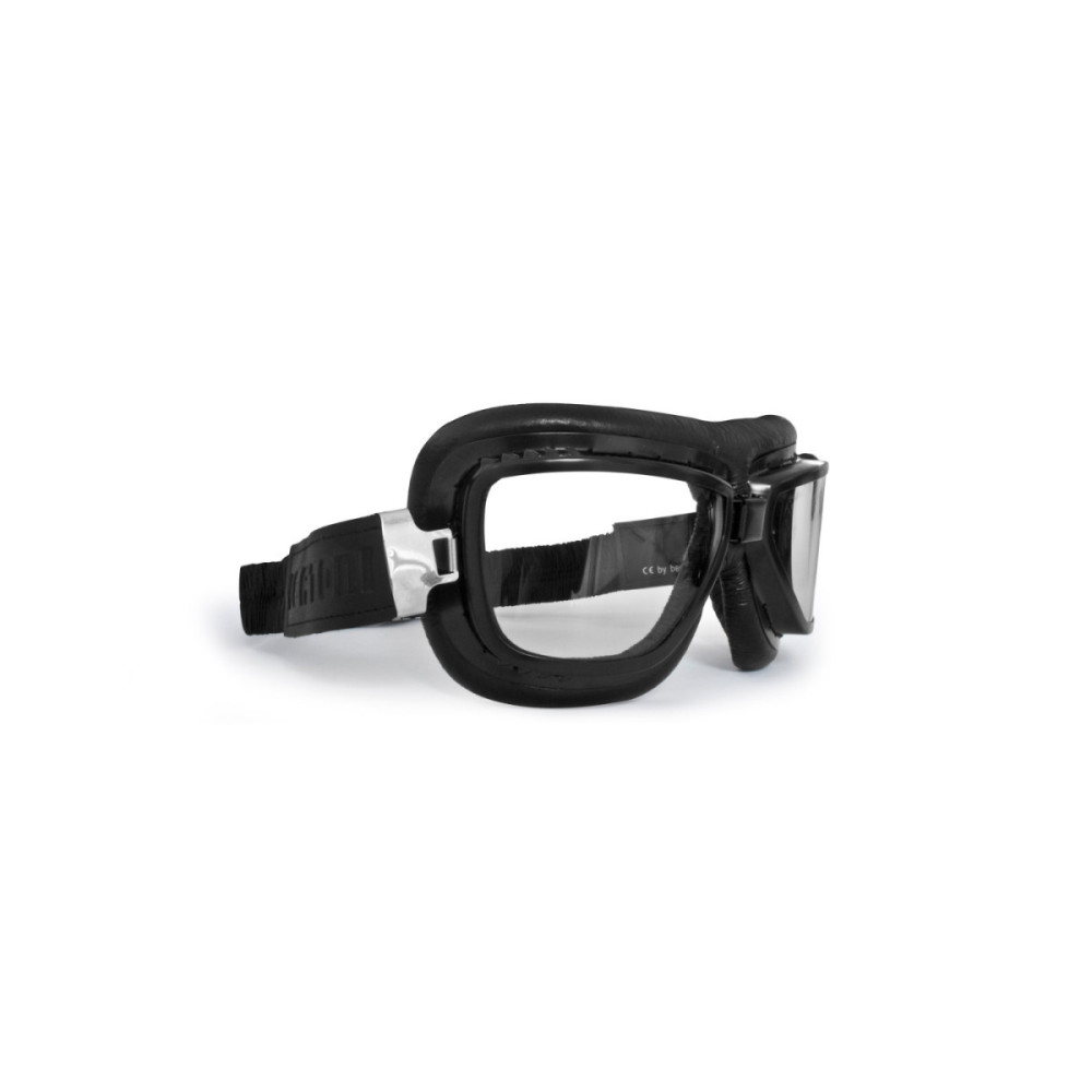 Motorcycle Vintage Goggles - Black Steel Profile -Antifog and Anticrash Lenses - Prescription Glasses Friendly - by Bertoni ItalyFont