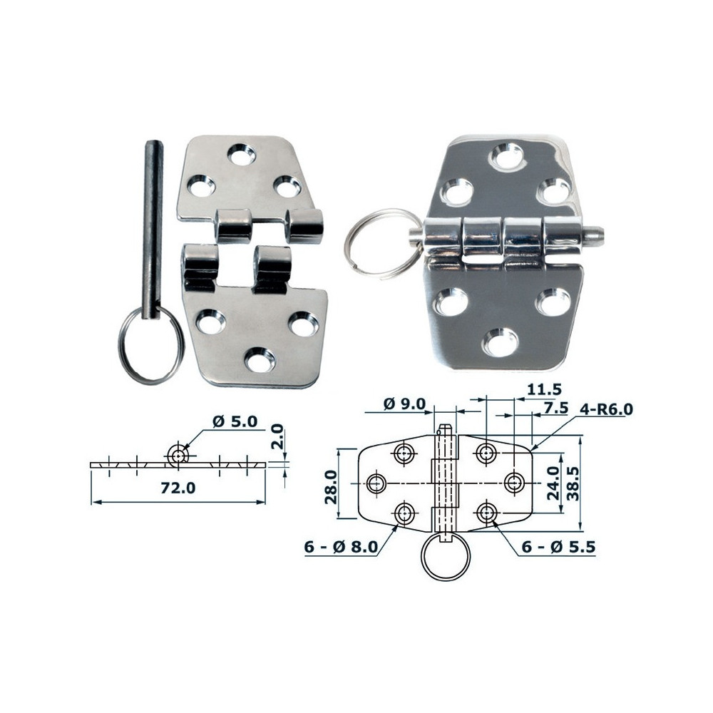 Glossed SS72x38,5mmThickness: 2mm"