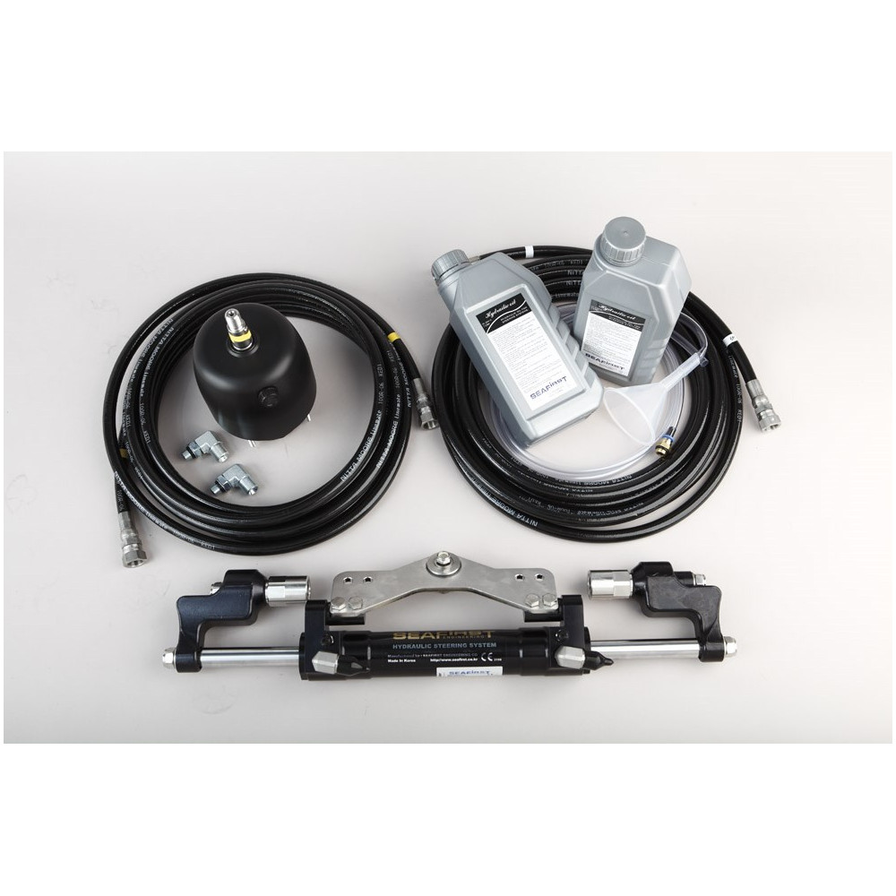 Steering kits includes: Front Mount Helm pump 25ccFront Mount Outboard cylinderHydraulic oil 1 liter x 2 bottles. SAE NO 15.Hydraulic Hose 3/8, 7 meter x 2pcsHelm pump fittings, Helm pump mounting hardware kit,...