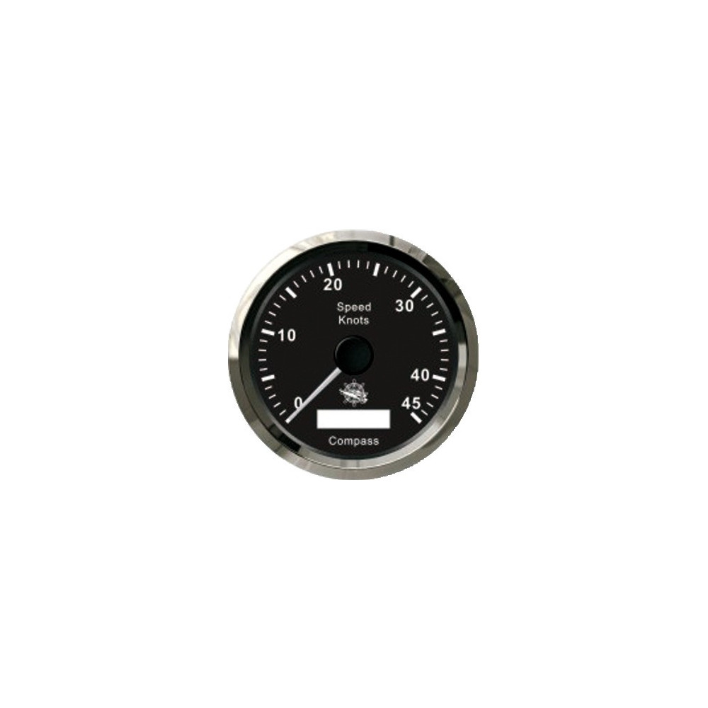 No transducer is necessary, it is equipped with 32-channel GPS antenna. - Type 1: Speedometer/compass: 0-45 knot speed analogic indication and compass course digital indication (degree by degree). - Type 2: Speedometer/totalizer/compass: speed digital indication 0-999 knots, Km/h or MPH, distance covered up to 99999 miles and compass course (degree by degree).