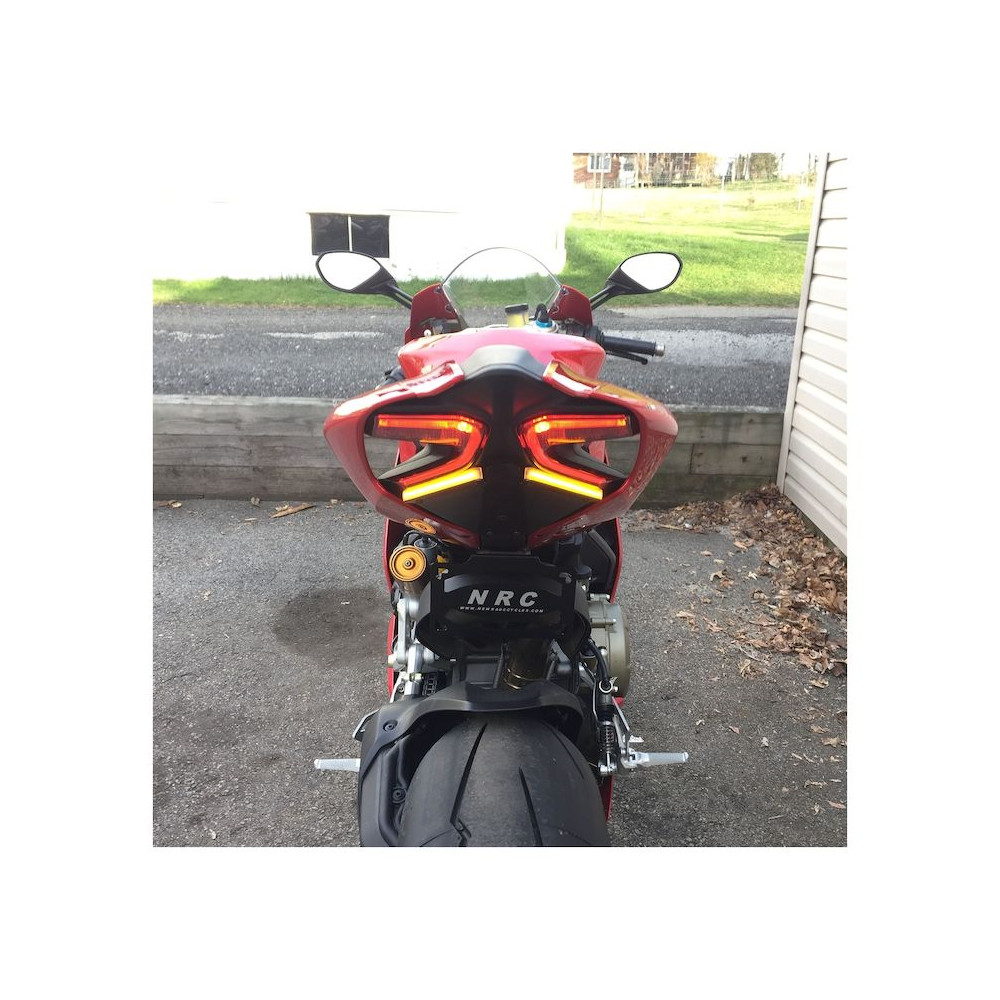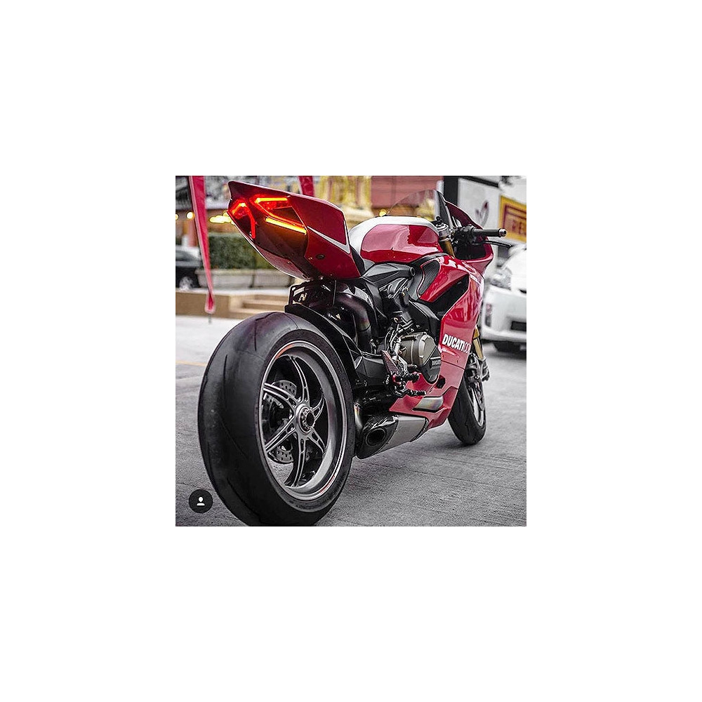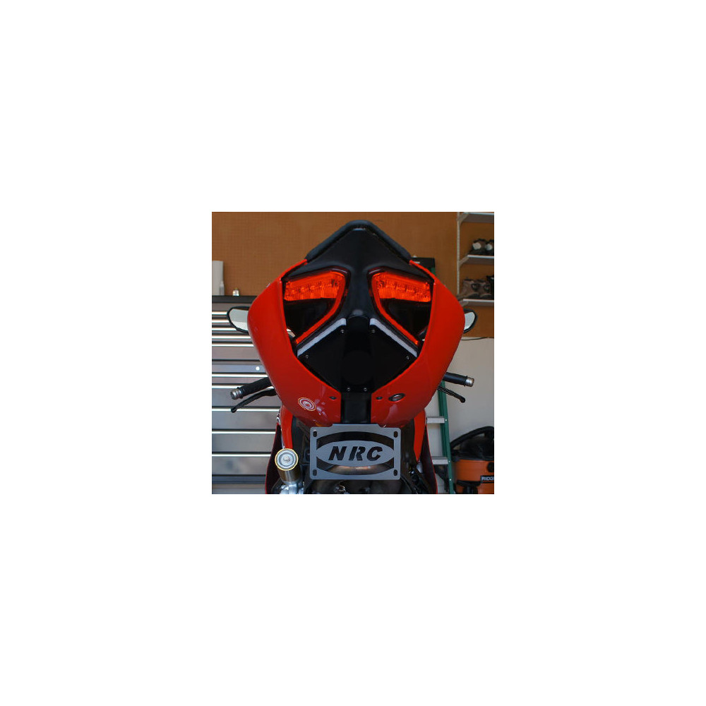 Ducati Panigale skiltbrakett eliminator nå tilgjengelig med justerbar skiltbrakett; montert direkte under haleseksjonen.