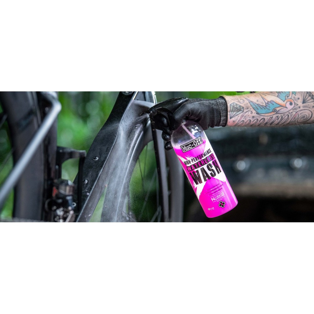 Muc-Off Waterless Wash er en svært avansert, brukervennlig spray som renser og polerer på sekunder uten behov for vann.