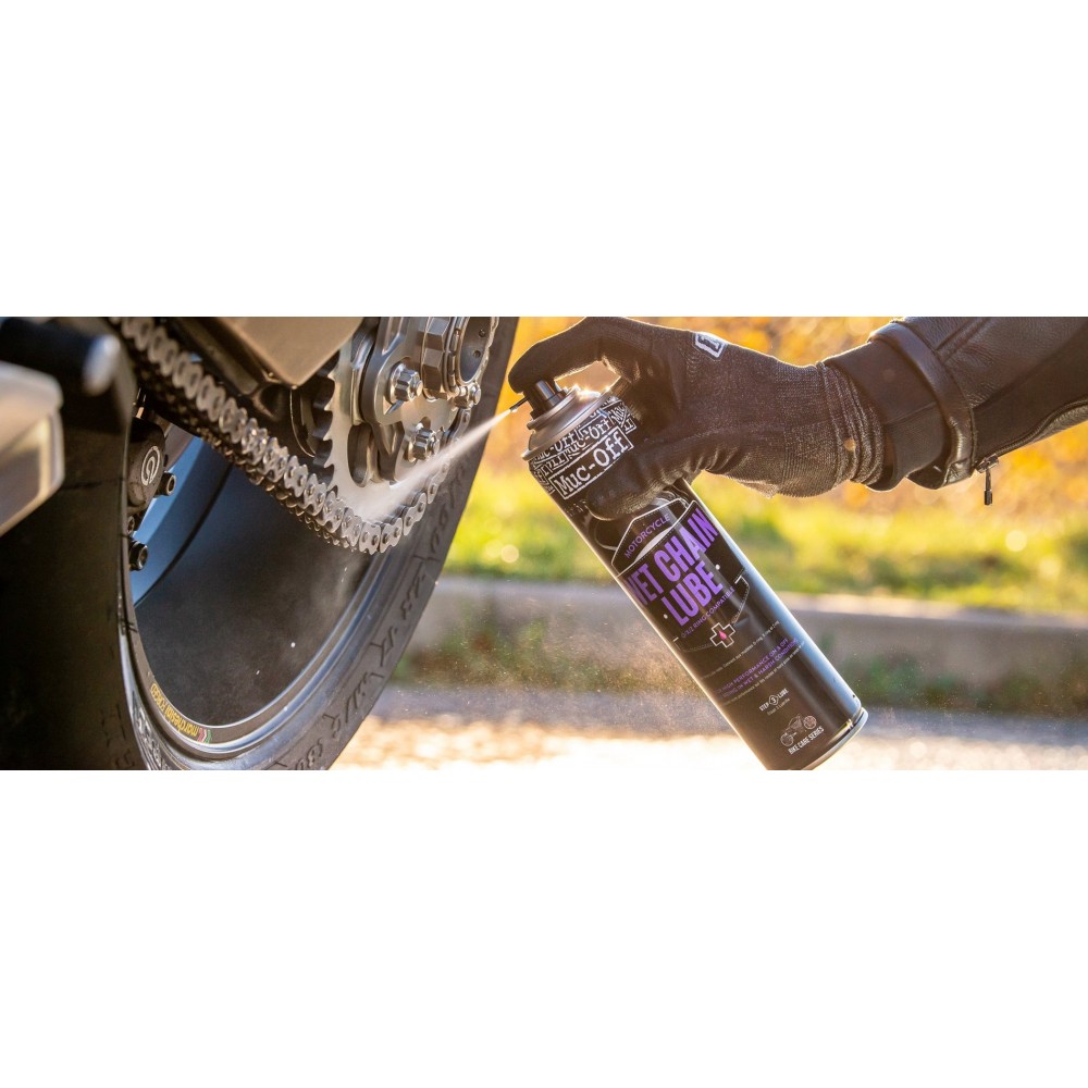 Muc-Off Wet Chain Lube ble utviklet av vårt team av interne boffins for å gi maksimal beskyttelse, uansett hva naturen kan kaste på kjeden din! Polymerformelen trenger dypt inn i kjedeleddene for å redusere slitasje og friksjon til et minimum under selv de tøffeste forhold. Vår ikke-tørkende hydrofobe smørefilm fester seg til alle ledd selv under en lang, regnvåt tur! Vær trygg på at Muc-Offs biologisk nedbrytbare kjederens vil fjerne den raskt når tiden kommer for en rengjøring og påføring på nytt!