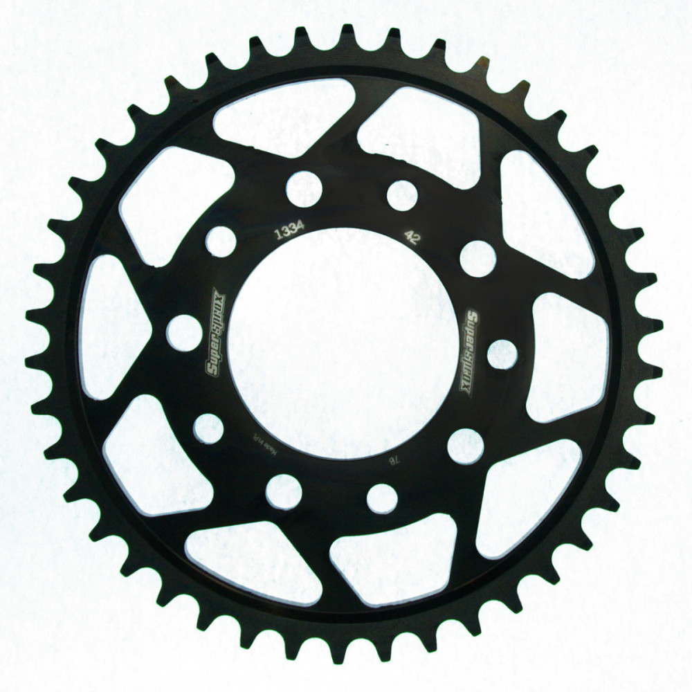 Supersprox - Racing Steel sprocket. Developed on the race track, to give longer sprocket life and high performance for all street and offroad bikes. Using CAD Designed and CNC-Laser cutting, to ensure an exact fit on...