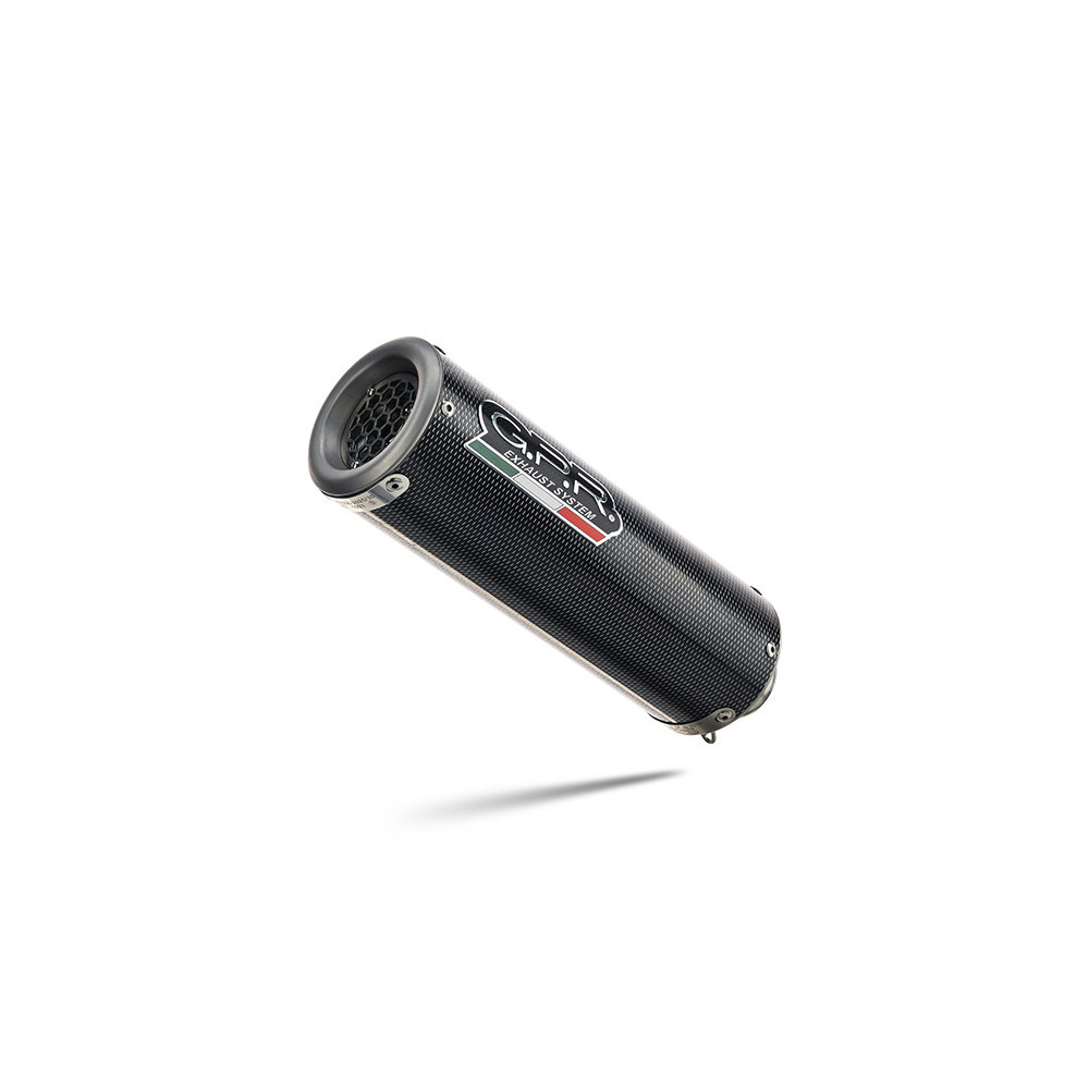 GPR's M3 Poppy Impact Zero was developed after the victories in the Moto3 World Championship. It has a removable racing grill and is road-legal. It has been developed with a production process that produces zero impact to the environment. It has a stainless steel body, CNC-machined bottoms with a carbon look finish. Its round shape has a diameter of 100MM.